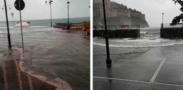 Come si evince dal filmato, diventato virale sul web, le strade di Ischia Ponte risultano completamente coperte dall’acqua. Le altissime onde alimentate dal fortissimo vento che si sta abbattendo sull’intera città di Napoli, hanno invaso il centro trasformandolo in una grande distesa d’acqua.