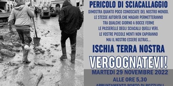 «Martedì 29 novembre ore 5.30 appuntamento porto di Pozzuoli muniti di stivali e pala per aiutare i nostri fratelli ischitani. La nostra appartenenza alla terra di Partenope. Dimostriamo che non è solo uno slogan ma un Credo! Diamo il nostro contributo per un giorno alla Nostra Ischia. Accorriamo in tanti con forza».
