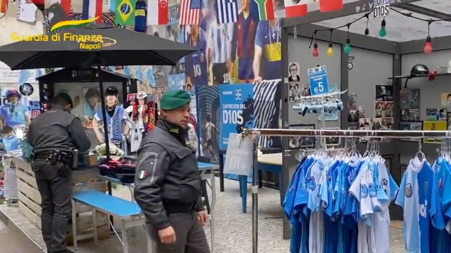 La Guardia di Finanza sequestra gli articoli contraffatti su Maradona ai Quartieri Spagnoli