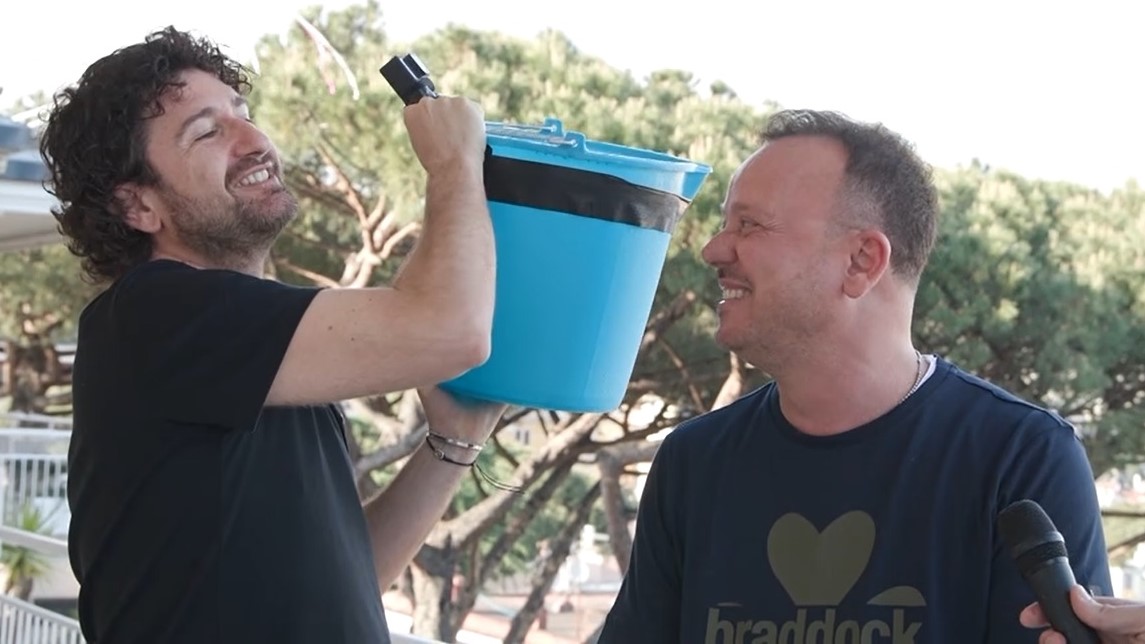 “Prendo un bel secchio di acqua gelata e me lo butto addosso” – era l’idea di Gigi D’Alessio che ha ricevuto poi il gelido “gavettone” da Alessandro Siani, a sua volta costretto a mangiare 1 kg di polenta come promesso da lui stesso in precedenza.