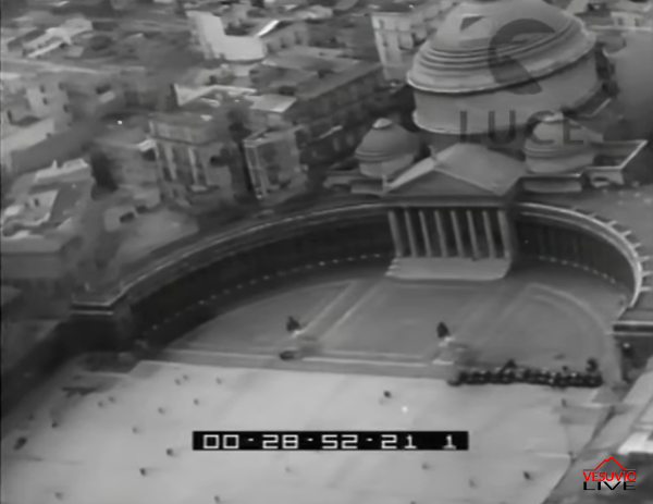 Ecco un’estratto di “Volando sull’Italia”, a cura dell’Istituto Luce, in cui le immagini mostrano la Napoli del 1949 vista dall’alto, in bianco e nero. Il breve filmato riprende i posti più belli e significativi della città, che si apre con una citazione del grande Goethe: “l’aria s’era fatta sgombra di nubi, e noi ci trovammo veramente in un altro mondo”. Sorvolando Spaccanapoli, Piazza del Gesù, Santa Chiara, il Maschio Angioino, il San Carlo e la Galleria Umberto, la Chiesa di San Francesco di Paola con il suo colonnato, santa Lucia e Castel dell’Ovo, fino a vedere la Villa, il Vomero e terminare con le acque limpide e odorose di Marechiare.