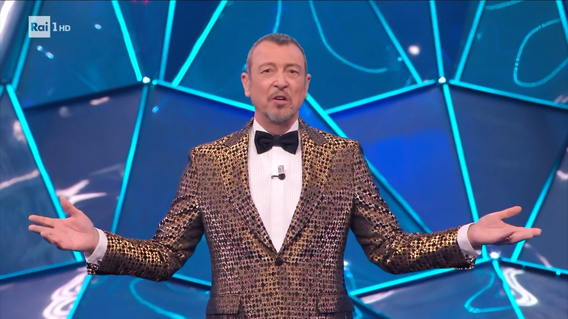20.58 Amadeus saluta il principe Alberto di Monaco seduto nel Palchetto