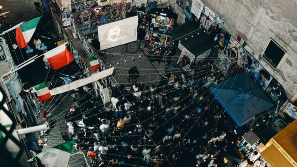 Il docufilm, prodotto da “nss factory” in collaborazione con Mentalità Media, è stato proiettato nel luogo simbolo del rapporto tra “la mano de D10S” e Napoli, ovvero a Largo Maradona nei quartieri Spagnoli, sotto al murale divenuto uno dei siti più visitati della città.