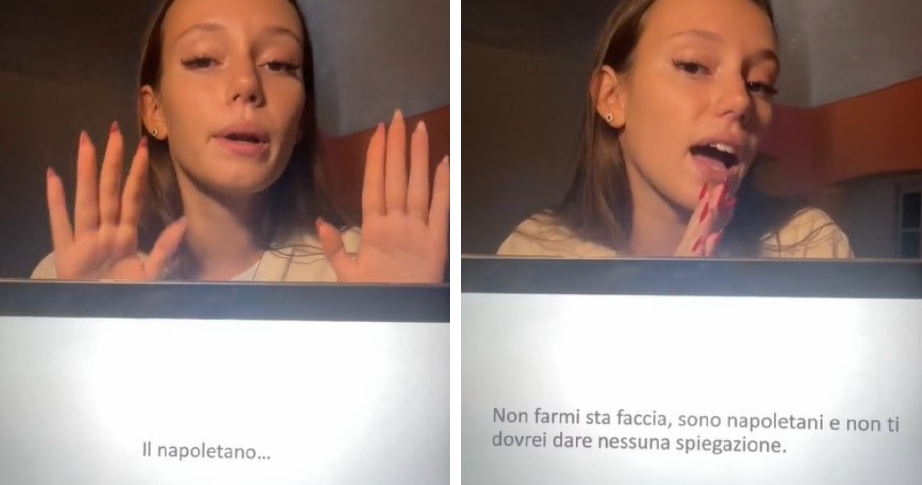 “Prossimo punto, so che vi farà molto male al cuore ma io i napoletani non li reggo. Per me i napoletani…mica ho scritto che si devono estinguere? Perché anche se lo penso non lo scriverei mai” – ha commentato la ragazza. Il tutto mentre sullo schermo compariva la seguente “motivazione”: “Non farmi ‘sta faccia, sono napoletani e non ti dovrei dare nessuna spiegazione. E no, non hanno neanche fascino”.
