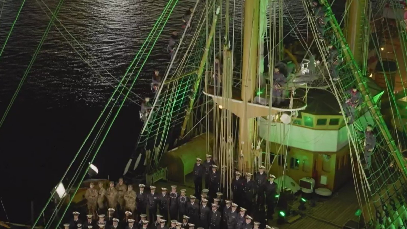 “Grazie per questa accoglienza. Abbiamo attraversato Oceano Atlantico, Pacifico e Mar Mediterraneo, visitato svariate località per un viaggio di oltre due volte il giro dell’equatore. E’ stato un viaggio bellissimo e indimenticabile, lo porteremo nel cuore del sempre” – ha detto il comandante.