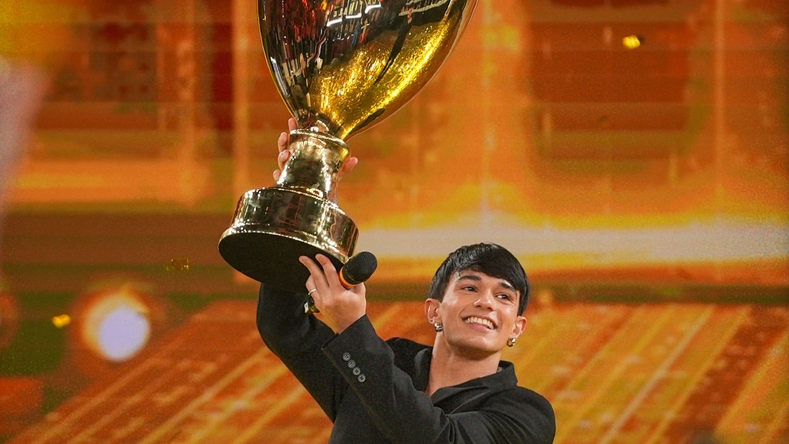 Daniele è arrivato in finale insieme al cantante Trigno che si è posizionato al secondo posto della classifica. Entrambi si sono avvicinati al maxischermo in attesa del verdetto che, attraverso le storiche carte, ha incoronato il ballerino casertano.