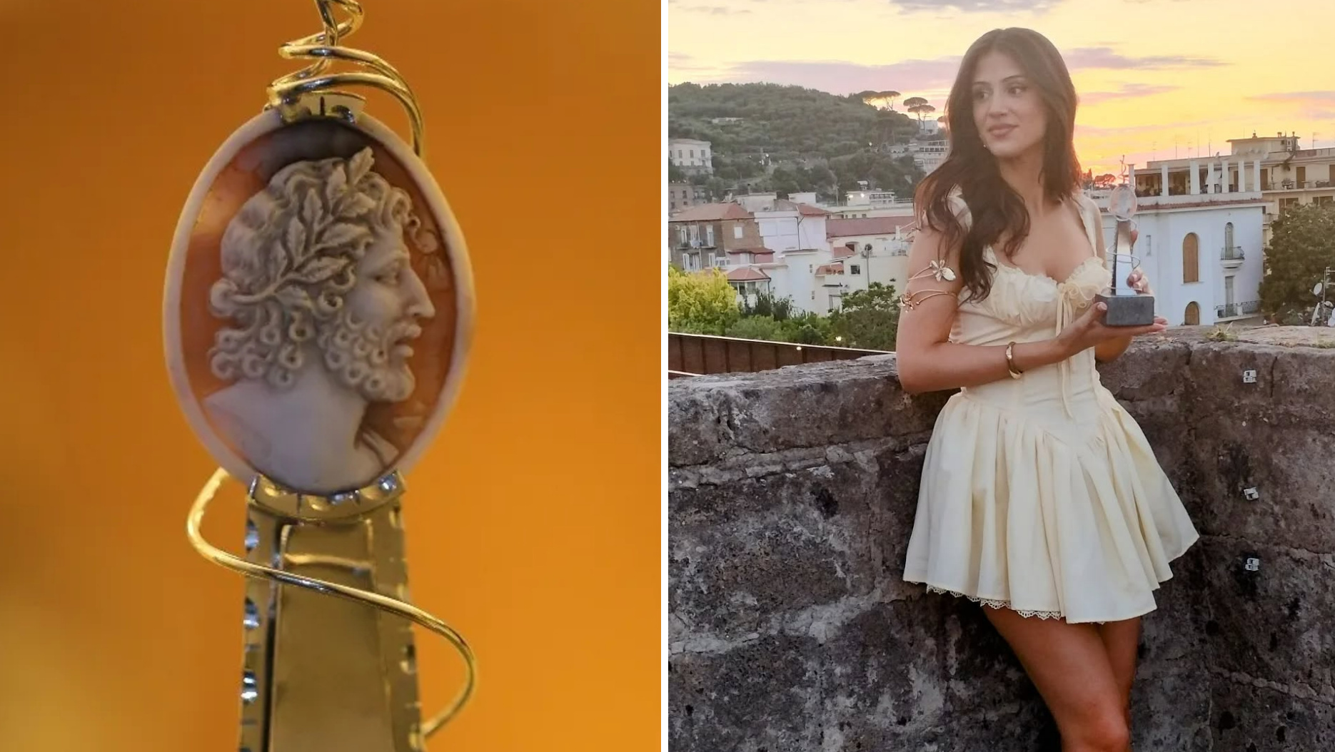 Un simbolo raffinato, scelto non a caso: quel cammeo, scolpito su conchiglia con maestria tutta torrese, incarna la bellezza, la resilienza e l’identità di un territorio che da secoli racconta storie attraverso le mani dei suoi artigiani. Un piccolo gioiello che diventa omaggio ai grandi protagonisti dell’audiovisivo italiano, un ponte tra arte e memoria, tra radici locali e prestigio nazionale.