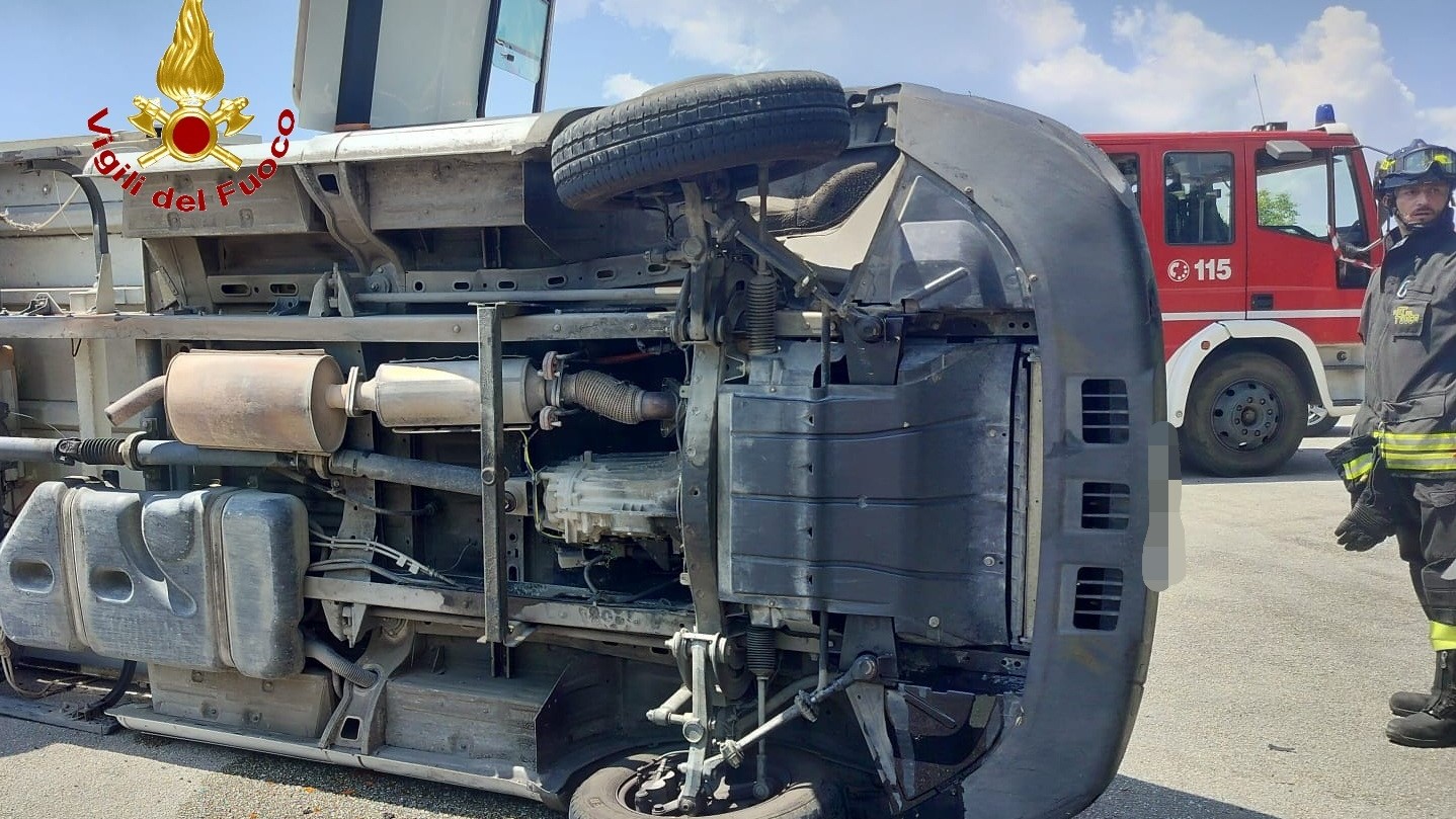 A seguito del violento scontro tra i due veicoli, l’automobile ha terminato la sua corsa nel bel mezzo della strada mentre il furgone, ribaltandosi, è finito fuori dalla carreggiata, con il conducente, un 48enne, rimasto incastrato al suo interno, tra le lamiere.