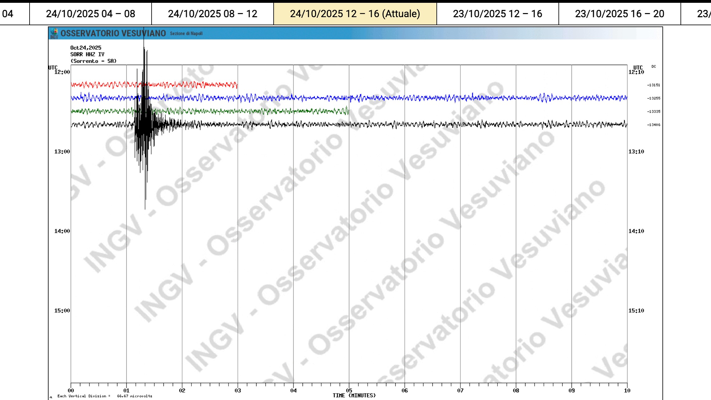 Terremoto ad Avellino il 24 ottobre 2025 - Segnale del sismografo regionale