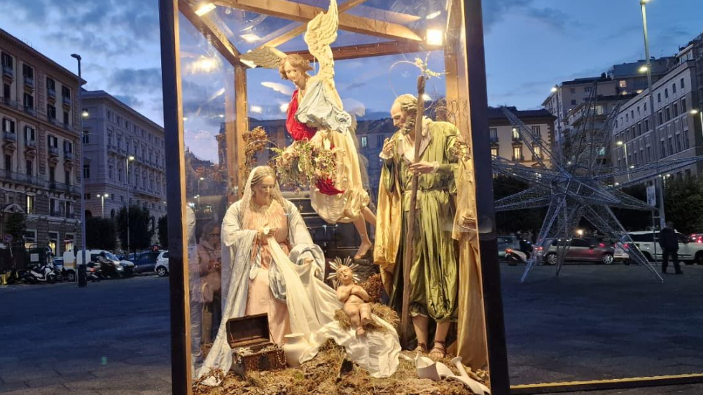 Inaugurata la Natività a grandezza naturale in Piazza Municipio, a Napoli, un’opera realizzata dai maestri artigiani di San Gregorio Armeno che celebra la grande tradizione presepiale napoletana, visibile fino all’8 gennaio 2026.