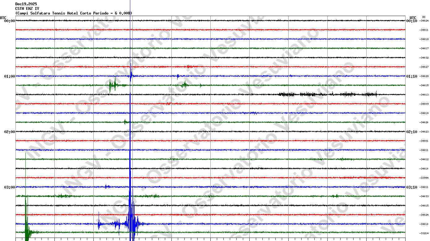“L’Osservatorio Vesuviano ha provveduto a comunicare a questa amministrazione che a partire dalle ore locali 04:42 (UTC 03:42) del 19/12/2025 è in corso uno sciame sismico nell’area dei Campi Flegrei. All’orario di emissione del presente comunicato sono stati rilevati in via preliminare 4 terremoti con magnitudo Md ≥ 0.0 (2 localizzati) e una magnitudo massima Md = 2.0 ± 0.3″ – si legge nella prima nota diffusa dal Comune di Pozzuoli.