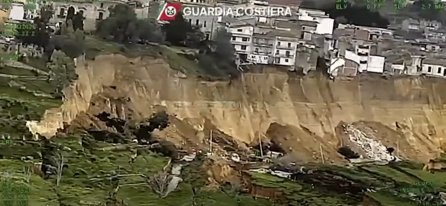 La frana — che già si estende per oltre quattro chilometri e continua a muoversi ogni giorno — ha trasformato il quartiere di Sante Croci in un paese “in bilico”, con edifici che sembrano pendere sul nulla e strade interrotte. Per garantire la sicurezza, le scuole sono rimaste chiuse e la Protezione civile ha delimitato una zona rossa di 150 metri dal fronte della frana.
