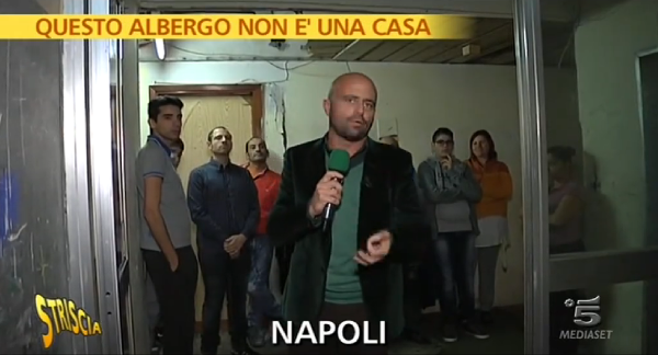 Questa volta la visita dell’inviato di Striscia la Notizia non è diretta ai cittadini bensì a chi ci amministra, chi dovrebbe provvedere a mantenere la parola data. Luca Abete si trova all’esterno dell’ ex Motel Agip di Secondigliano, dove diversi anni fa furono indirizzate alcune famiglie sfollate. Un fabbricato fatiscente, dimenticato che avrebbe tutti gli estremi per essere dichiarato inagibile, una costruzione che si sostiene sulle macerie, sui pilastri rotti, e fili elettrici che minacciano la sicurezza, muri colmi di umidità, un fabbricato che dopo anni è ancora la casa di molti sfollati, adulti e bambini.