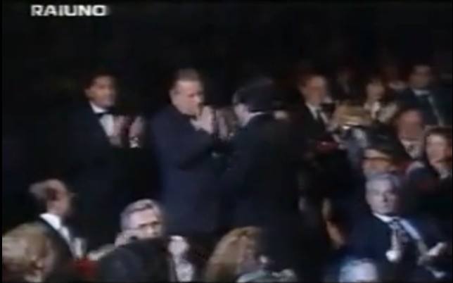 L’uomo in questione è Mario Merola, il quale con grande umiltà e quasi a volersi scusare dell’imprevisto, inizia a battere le mani al cantante irlandese che risponde con un rispettoso inchino.