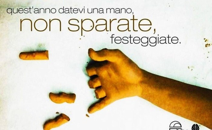 Una foto eloquente di una mano con dita mozzate, alcuni numeri della smorfia napoletana e lo slogan “Quest’anno datevi una mano, non sparate, festeggiate“. E’ la campagna choc realizzata quest’anno per combattere la battaglia ai botti di fine anno.