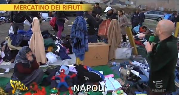 L’inviato di Striscia, nella puntata andata in onda ieri sera, è tornato sul luogo”incriminato” e, come avevano promesso le forze dell’ordine, tutto era stato sgomberato. Peccato però che tale mercatino sia stato solo spostato di zona! Nel video, infatti, si vede chiaramente come il fenomeno abbia trovato terreno fertile presso un campo Rom di Gianturco! D’altra parte era prevedibile, perché si tratta di persone che vivono alla giornata, le quali non avendo un’opportunità che consenta loro di lavorare e guadagnare, devono trovare un modo per tirare avanti.