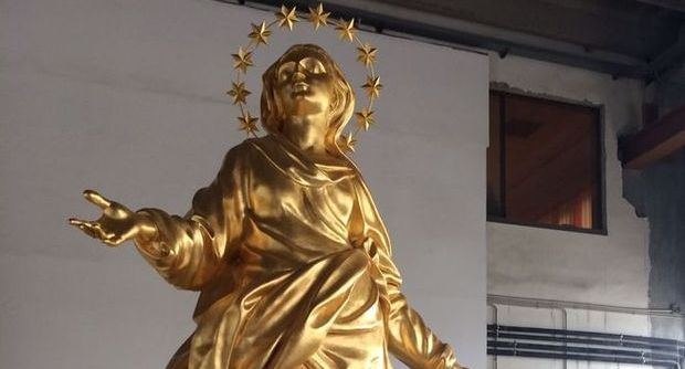Quattro metri e mezzo di altezza per un peso totale di 14 quintali con 4750 fogli d’oro giallo 24 carati che la ricoprono: ecco la copia perfetta della splendida Madunina del Duomo realizzata dalla Antica Fonderia Nolana della famiglia Del Giudice che volerà da Nola a Milano per vegliare sui padiglioni dell’Expo 2015.