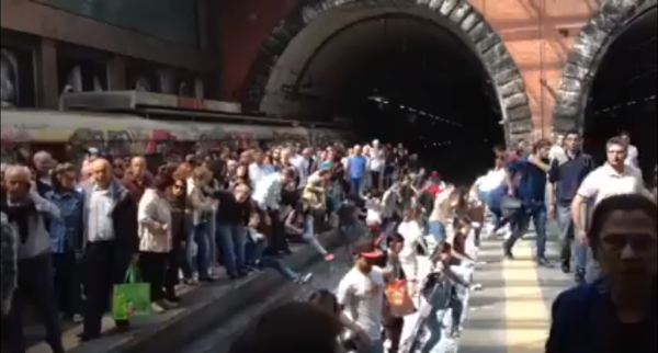 Alcune persone per liberarsi dalla folla ed evitare le lunghe attese per poter uscire dalla stazione hanno addirittura attraversato pericolosamente i binari.