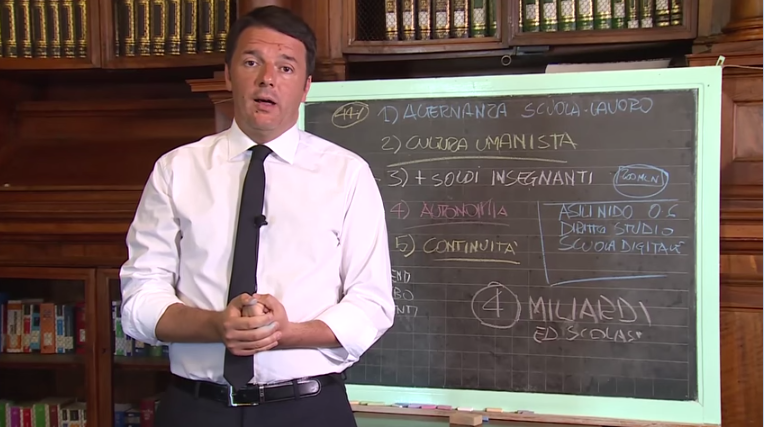 Il premier Matteo Renzi si è cimentato nella veste d’ “insegnante”, munito di lavagna e gessetti colorati, per spiegare i punti chiave del DDL Buona scuola, la tanto chiacchierata riforma della scuola italiana.