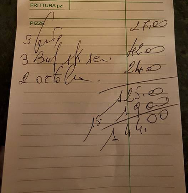 È chiaro che la qualità si paga, anche se una pizza è fatta con prodotti poveri, quello che incide sul prezzo finale è qualità degli ingredienti. Ricordiamo, inoltre, che la mozzarella di bufala è un prodotto che non costa di certo poco, è un’eccellenza regolata da un rigido disciplinare e che porta la denominazione di origine controllata. Quello che ovviamente dovrebbe destare preoccupazione non è il conto, ma la mancata fatturazione di quest’ultimo.