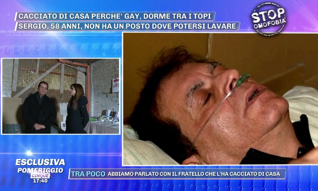 Sergio, infatti, è stato intervistato da Pomeriggio 5, mostrando ancora lo stato in cui è costretto a vivere. Letto e bagno di fortuna sono solo alcune delle cose che l’inviata di Barbara D’Urso ha potuto constatare. Sergio vive senza corrente elettrica, spesso in compagnia di topi e con il fetore della fogna. La sua colpa? A sua detta, quella di essere omosessuale.