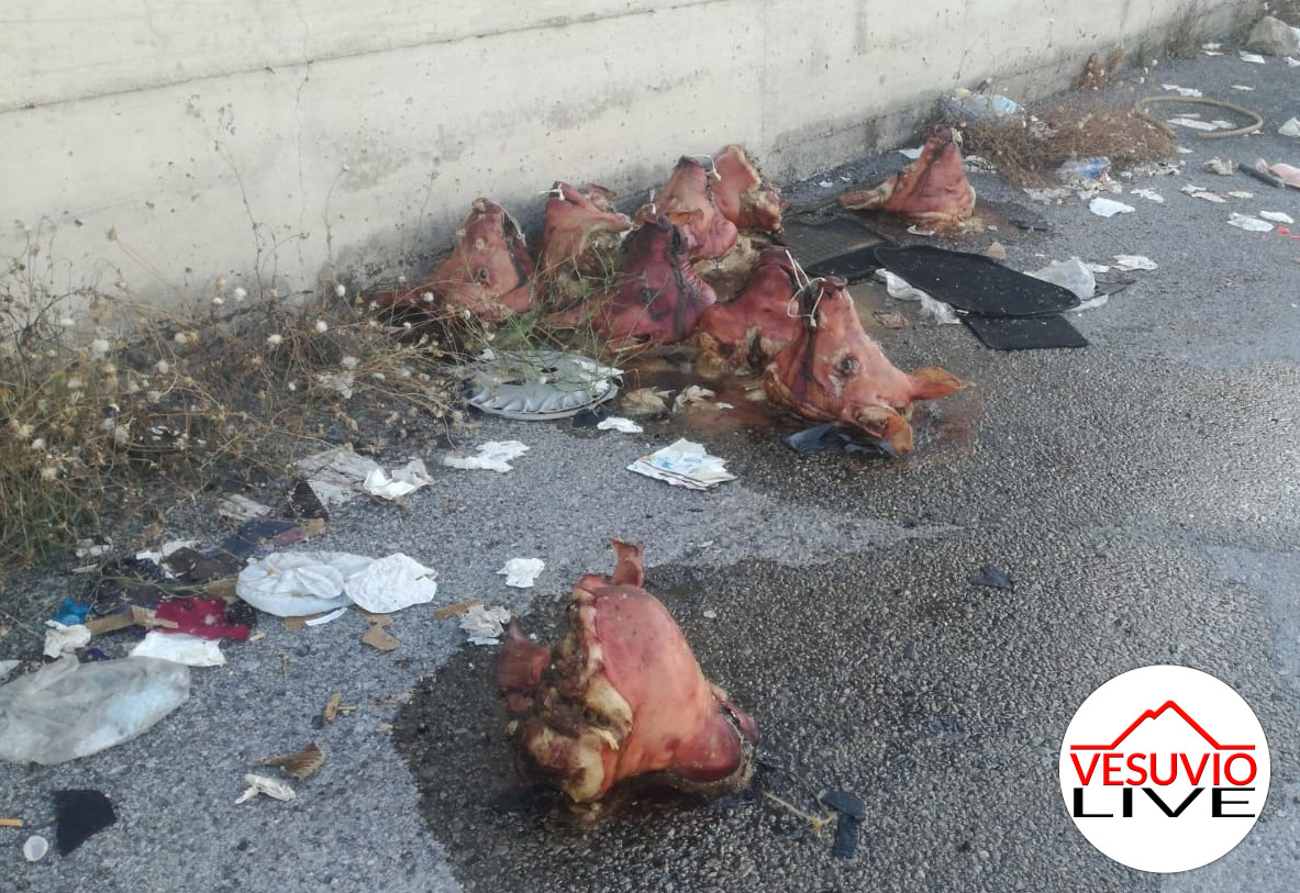 Orrore sulla Strada Statale 268 del Vesuvio: alcune teste di maiale sono state buttate a terra nell’area della pompa di benzina abbandonata, nei pressi dell’autovelox, al confine tra Somma Vesuviana e Ottaviano zona industriale.