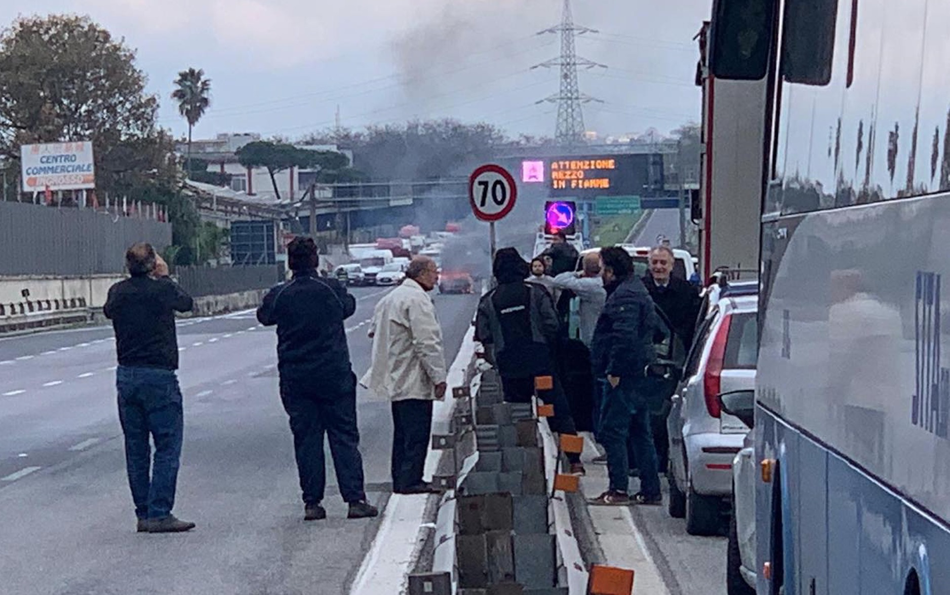 AUTOSTRADA – Non va meglio agli automobilisti che questa mattina si trovavano sull’autostrada. A casa di un veicolo andato in fiamme, la circolazione è rimasta bloccata per ore. L’incidente è avvenuto sull’autostrada Napoli-Salerno, tra l’allacciamento dell’A1 Roma-Napoli e lo svincolo San Giovanni a Teduccio – Zona industriale, a causa di un incendio su un veicolo che stava procedendo in direzione Napoli. Precisamente all’altezza uscita Ponticelli. Questo il video e le foto realizzate dal collega Carlo Papa, giornalista di ‘Il Partenopeo’.