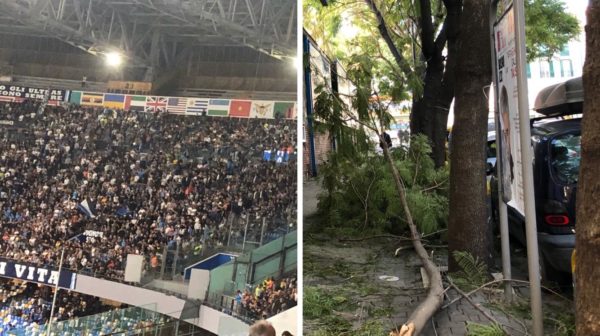 Vento forte a Napoli: cadono alberi e calcinacci. Posticipata alle 18.30 la partita
