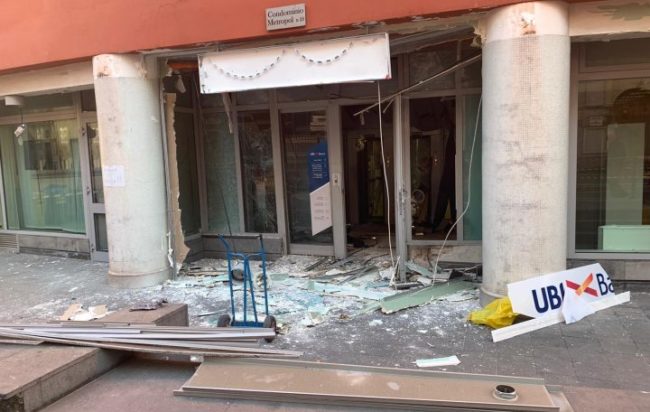 Lo scoppio dell’ordigno ha distrutto l’ingresso della banca e alcune finestre degli appartamenti vicini all’esercizio. I militari hanno acquisito le registrazioni del sistema di videosorveglianza della filiale e di altre attività dell’area.