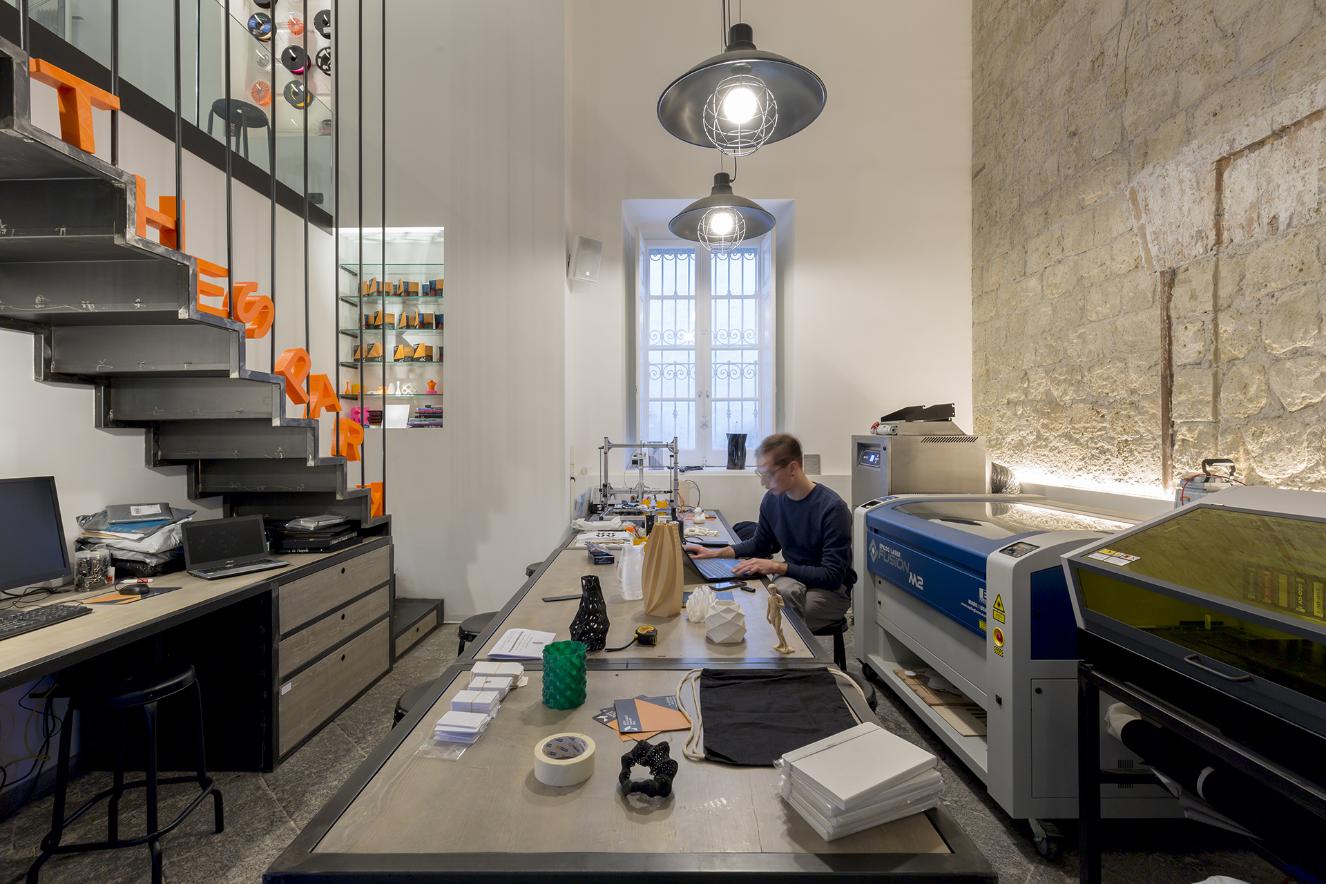 Come si legge sul sito, il progetto, a conduzione familiare, nasce dall’idea di connettere diverse realtà capaci di catalizzare cultura e innovazione creando una community partecipativa e dinamica. All’interno della libreria infatti ci sarà un’area dischi, un laboratorio di fabbricazione digitale, completo di macchinari necessari allo sviluppo di attività legate al design e all’artigianato 4.0. Oltre ad uno spazio dedicato a uno studio di progettazione, una zona coworking (con postazioni singole o condivise, dotate di tutti i servizi, una sala riunioni e una stanza dedicata alle conference call) e un’area dedicata alla formazione e agli eventi. Aree in questi mesi già impegnate in diverse attività, con i ragazzi dell’Università degli studi della Campania che hanno studiato e sperimentato l’uso della stampante 3D e della laser cutter.