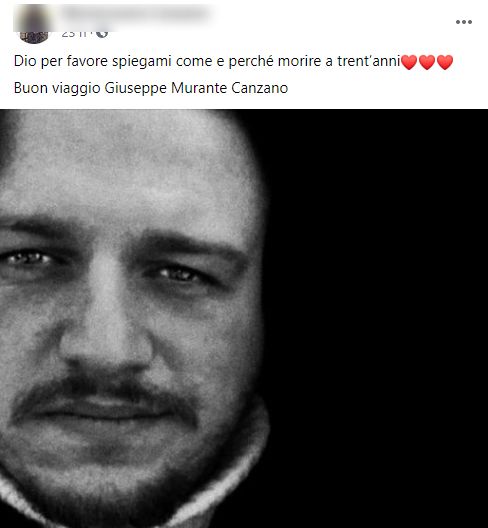 Il dolore della perdita di un amico di soli 30 anni è troppo grande e le spiegazioni sono difficili da cercare, anche se ci si rifugia nella fede: “Dio per favore spiegami come e perché morire a trent’anni. Buon viaggio Giuseppe Murante Canzano“.