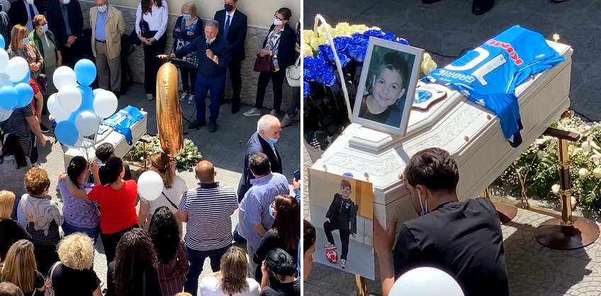 La cerimonia si è svolta questa mattina ed è stata mostrata in diretta sulla pagina Uniti in preghiera per Gabriel. Sulla bara bianca è stata posata la maglia numero 10 del Napoli, la squadra che amava, ed intorno tanti palloncini bianchi ed azzurri.