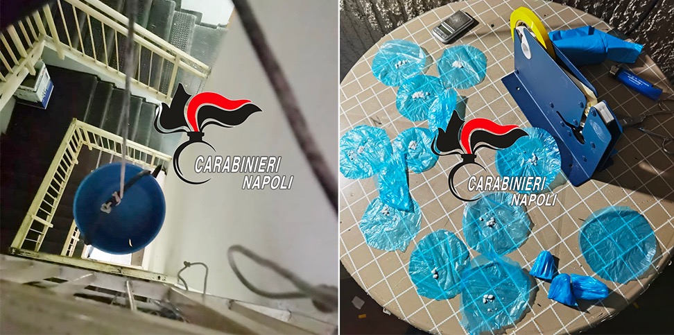Questo trucco non è sfuggito ai Carabinieri della Sezione operativa di Castello di Cisterna. Dopo aver monitorato questo traffico, i militari hanno costeggiato le rampe di scale, parallelamente al paniere in risalita. Il 23enne non ha avuto modo di fuggire che i carabinieri lo hanno bloccato. Per lui le manette. Sul banco da lavoro più di 60 grammi di crack, 155 euro in contante ritenuto provento illecito, 3 bilancini di precisione e materiale vario per il confezionamento. Il giovane è finito in carcere ed è ora in attesa di giudizio. Risponderà di detenzione di droga a fini di spaccio.