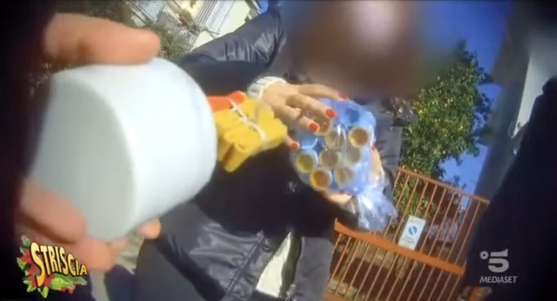 Luca Abete si mostra al momento della consegna della busta contenente i petardi. Il ragazzo, resosi conto di essere nei guai, fugge e all’apposita domanda dell’inviato risponde: “Scappo”.