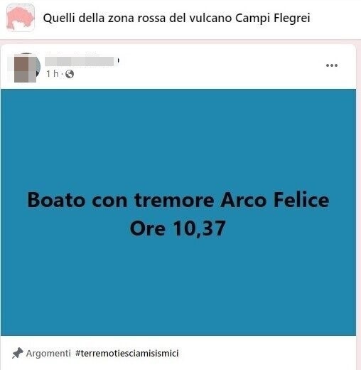 Nonostante la lieve entità della scossa in molti, all’interno del gruppo ‘Quelli della zona rossa dei Campi Flegrei’, segnalano di averla avvertita in maniera forte. Alcuni cittadini raccontano di aver sentito prima un boato e, poco dopo, un tremore.