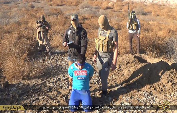 Il Daesh, il gruppo terroristico che in Occidente è conosciuto, in modo errato, come ISIS (“Stato Islamico” è ancora più sbagliato e fuorviante), ha decapitato un poliziotto iracheno che durante la prigionia indossava una maglia del Napoli Calcio. L’omicidio si inserisce all’interno della guerra civile in corso in quei luoghi tra il Daesh e le forze armate dei vari stati.