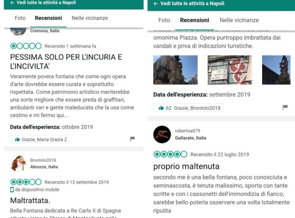 Addirittura, qualche mese fa, documentammo l’abbandono di alcuni assorbenti femminili all’interno della vasca. La costruzione della recinzione protettiva, sullo stile di quella che contornava un tempo la fontana, è motivo di soddisfazione per noi, che abbiamo condotto una lunga battaglia per ottenerla, e per i negozianti della zona come Genny Cardone che, negli ultimi anni, si sono presi cura del monumento”.