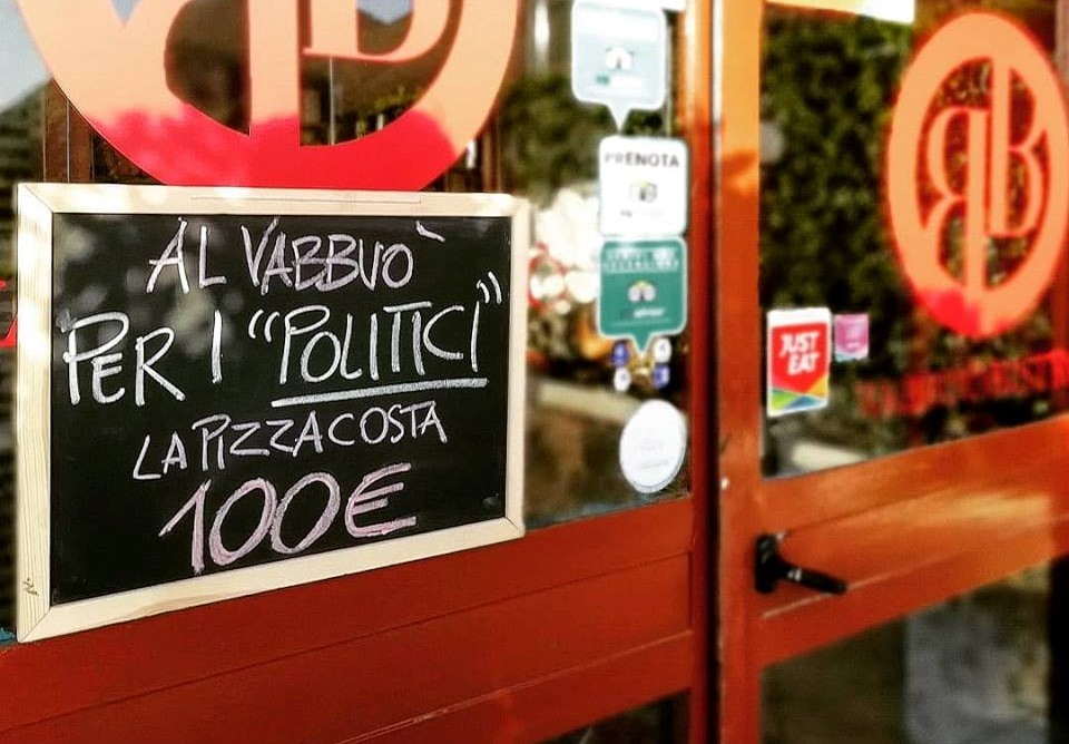 È un messaggio molto chiaro verso il mondo politico della cittadina in provincia di Caserta. Una protesta aperta verso un certo modo di intendere e gestire la cosa pubblica che, al posto dell’interesse collettivo, mette l’interesse personale. La campagna elettorale è, notoriamente, un periodo in cui i candidati fanno a gare per offrire caffè e pasti con la speranza di ricevere un voto, ma evidentemente il locale non vuole prestarsi come teatro di tale pratica.