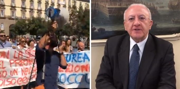 “Con la scusa del precariato sono un navigator disoccupato” e “Laureati selezionati disoccupati”. Questo è ciò che è stato scritto sugli striscioni che aprono il corteo dei navigator della Campania, diretto a Palazzo Santa Lucia. La protesta va avanti ormai da settimane. Ed è contro la decisione del presidente della Regione, Vincenzo De Luca, di non firmare la convenzione con Anpal Servizi. Convenzione necessaria affinché i vincitori di concorso possano iniziare a lavorare.