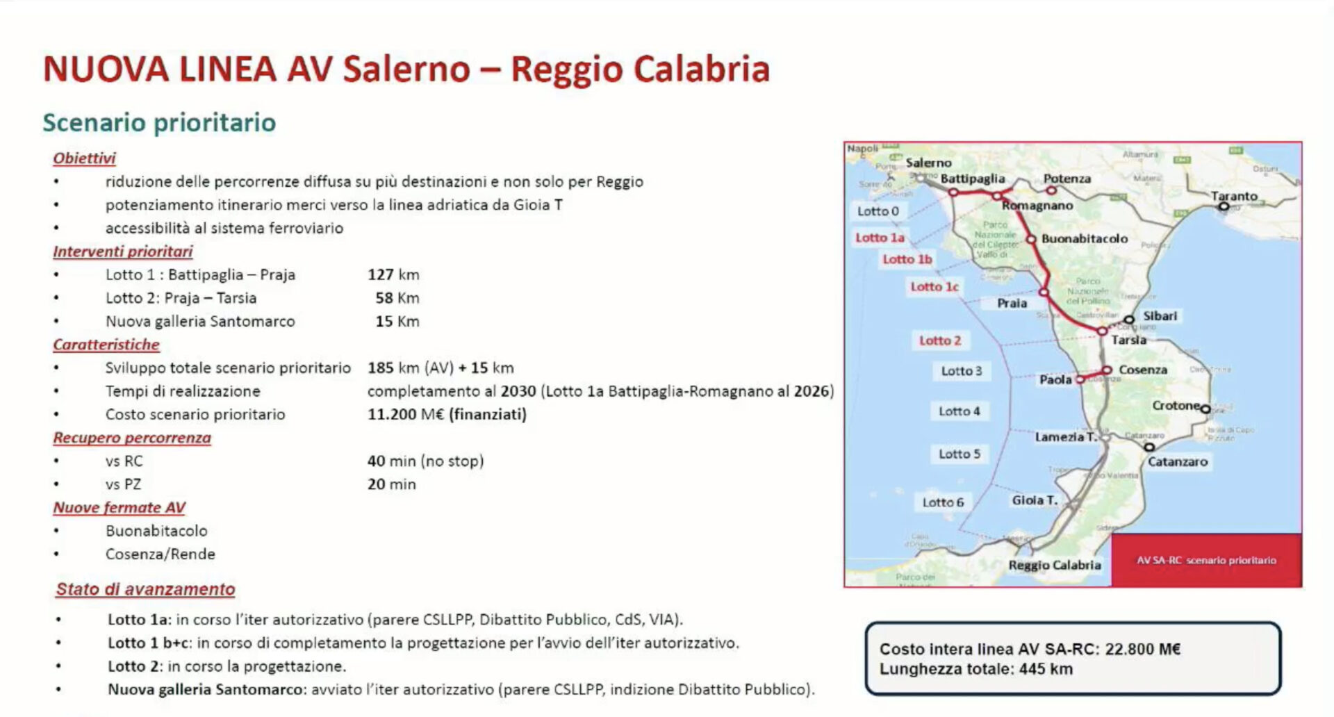 L’Alta Velocità sarà portata ad ulteriori 9 milioni di cittadini italiani, di cui sei residenti nel Mezzogiorno. Il presidente della Regione Campania, Vincenzo De Luca, ha sottolineato l’importanza dell’opera ricordando come il Sud abbia perso un milione e 600mila abitanti in 15 anni: una tragedia, quella dello spopolamento, che se non combattuta attraverso politiche che incentivano l’occupazione – direttamente o indirettamente – farà morire il meridione in quanto disabitato. La conferenza di presentazione del progetto è stata trasmessa sulla pagina Facebook della Regione Campania.