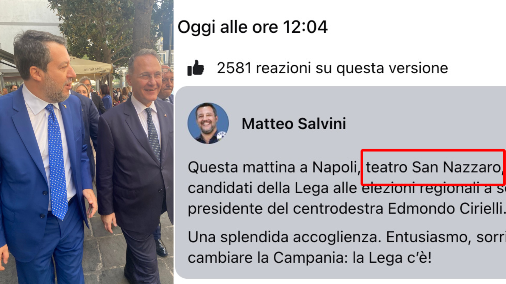 La chicca è poi arrivata quando ha pubblicato sui social il resoconto dell’incontro a Napoli. Ha storpiato il nome del Teatro Sannazaro in “San Nazzaro”, ovvero il fiocco dell’ignoranza all’inconsistenza e incapacità politica.